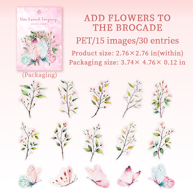 The Branch Gossip Stickers set features delicate branches and trailing greenery, capturing the gentle beauty of nature’s quiet growth. Ideal for botanical-themed journaling, scrapbooking, or adding a soft, organic feel to your pages. Let each sticker bring calm and natural elegance to your creative moments.