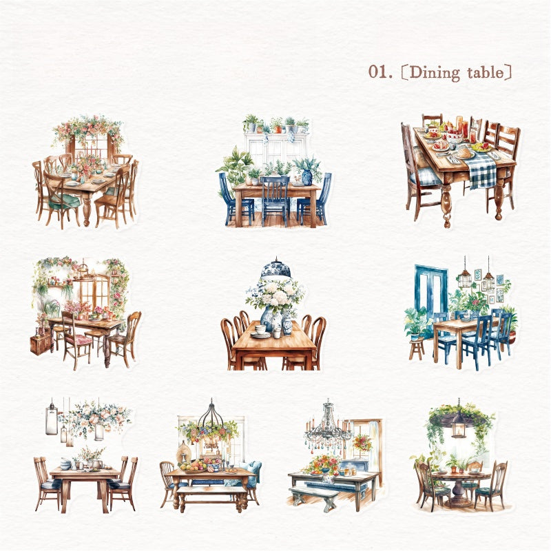 The Daily Home Stickers capture the charm of cozy, domestic life. Featuring warm cups of coffee, comfy sofas, and cozy corners, these stickers bring a sense of comfort and tranquility. Ideal for decorating planners, journals, or scrapbooks, they celebrate the simple joys of home and everyday moments.