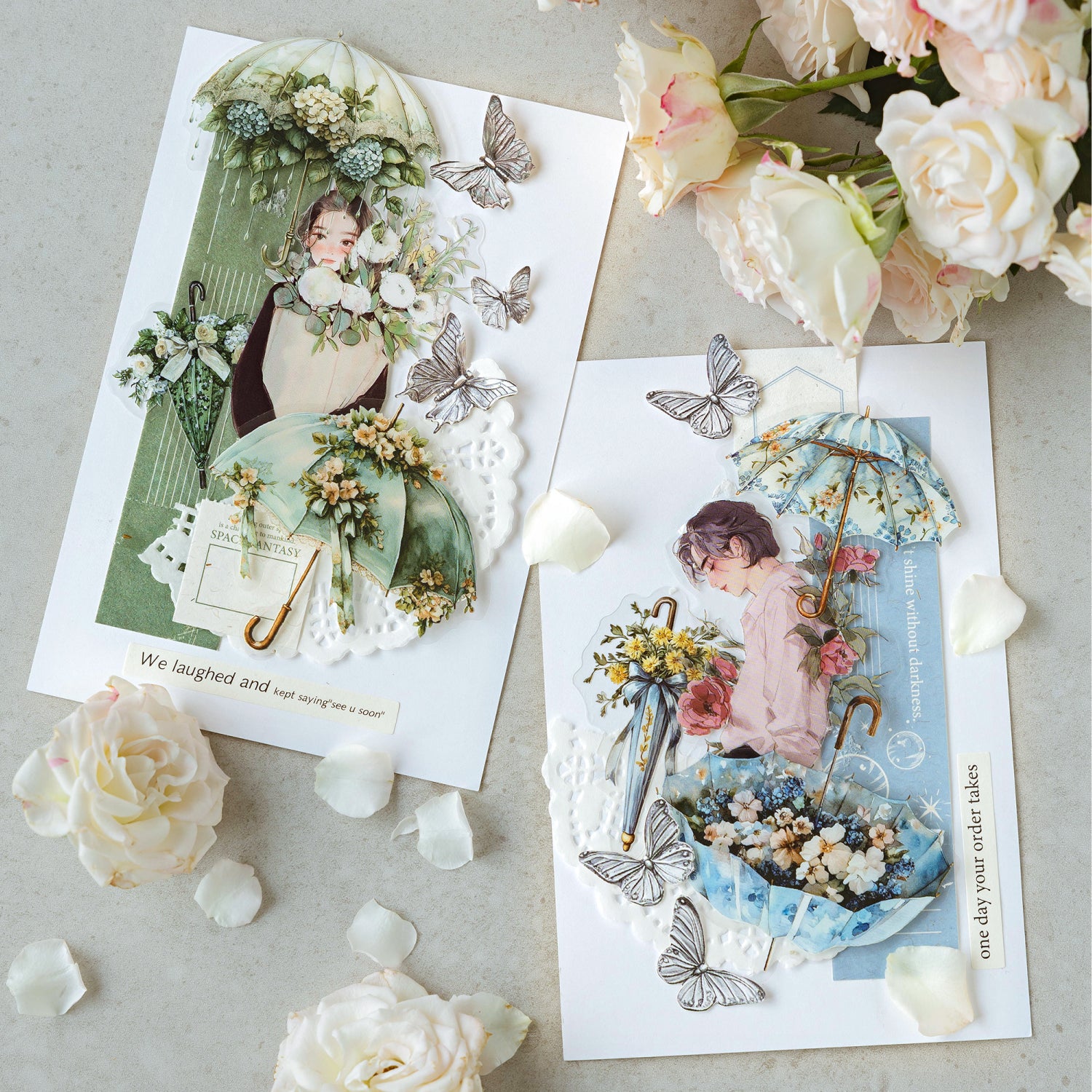 Floral Umbrella Concerto” stickers bring a symphony of blooming umbrellas in soft hues and delicate designs—perfect for adding charm and elegance to your journal, letters, or craft projects.