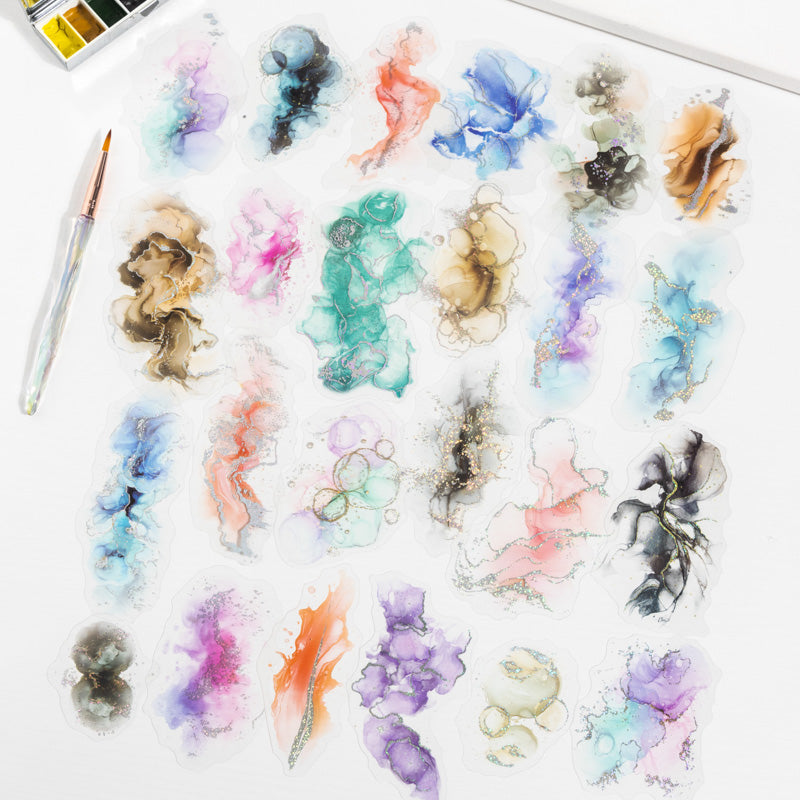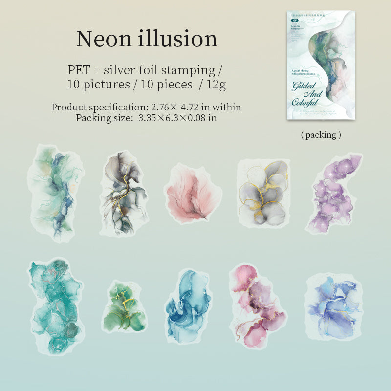 The Gilded Glow Stickers set shimmers with metallic accents and radiant colors, blending elegance and brilliance. Ideal for luxurious journal themes, scrapbooking, and highlighting your favorite memories.