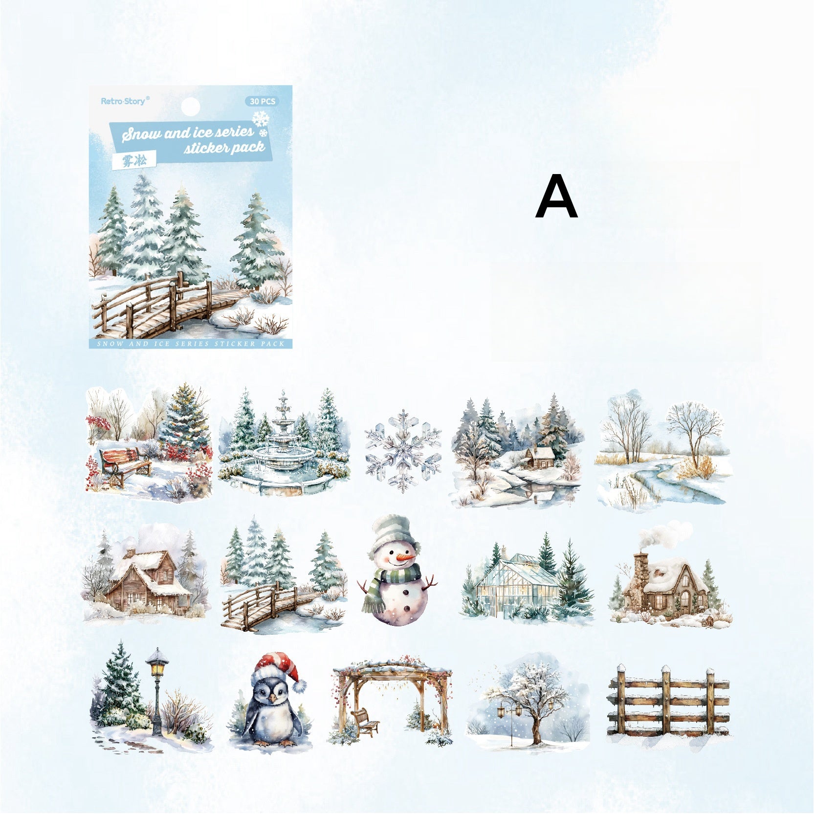 The Ice and Snow Stickers evoke the serene beauty of a winter wonderland, featuring frosty patterns, snowflakes, and icy landscapes. Ideal for adding a seasonal touch to journals, scrapbooks, or holiday cards, these stickers bring the chill and charm of winter to your creations. Embrace the magic of ice and snow!