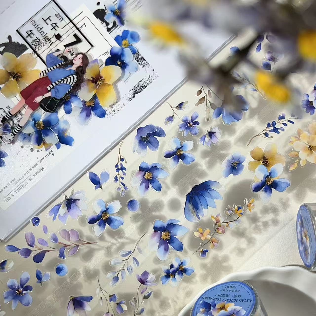 The Blue Violet Bloom Tape captures the gentle fusion of blue and purple hues, creating a dreamy watercolor effect. Its soft gradient design adds an elegant, artistic touch to journals, cards, and crafts—perfect for expressing calm, mystery, and poetic charm.