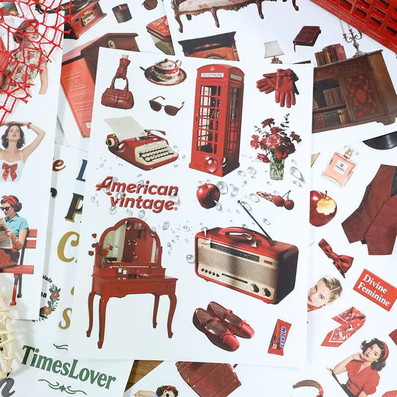 The Retro Red Sticker Book features elegant retro designs in deep crimson tones. From antique patterns to romantic motifs, each sticker adds a warm, nostalgic touch to your journals, letters, and crafts — perfect for expressing timeless charm and classic beauty.