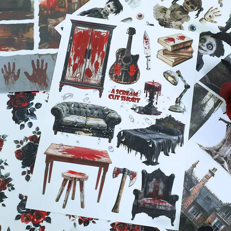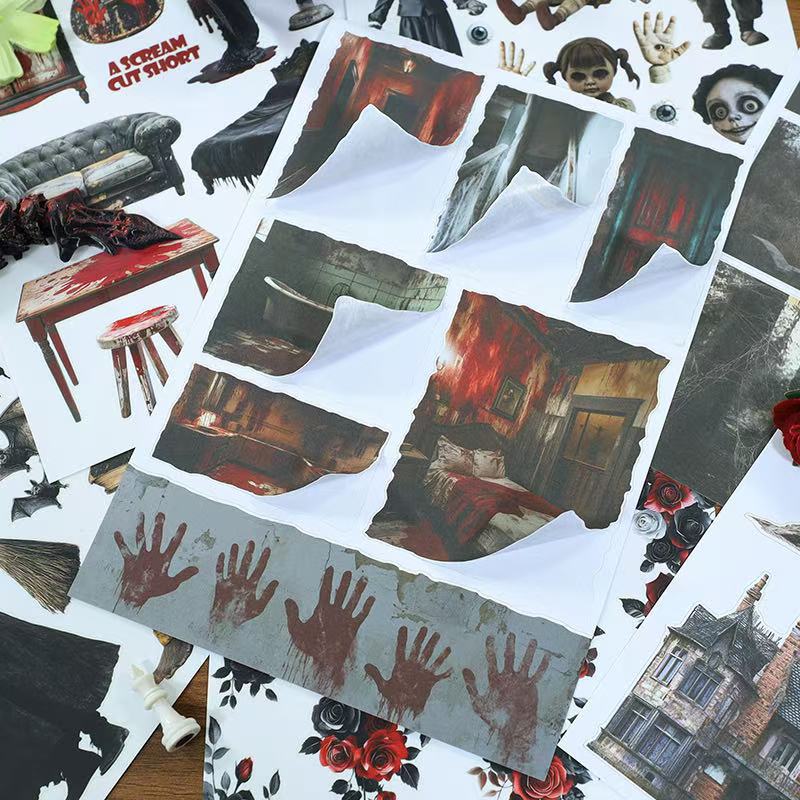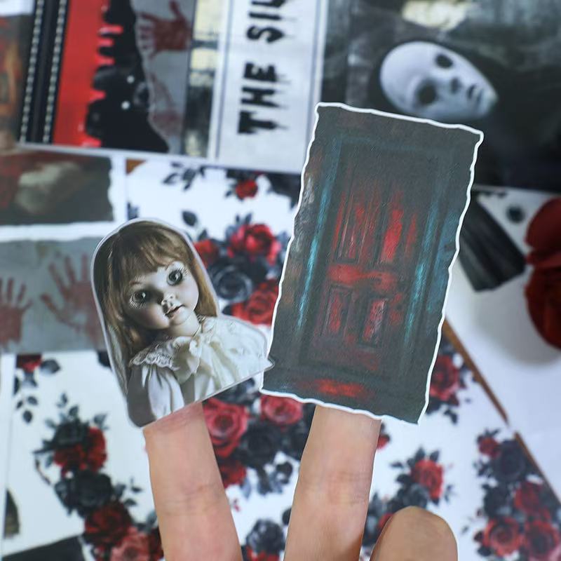 The Silent Fear Sticker Book evokes an eerie yet captivating atmosphere with its dark, gothic visuals. Featuring mysterious eyes, shadowy figures, and haunting symbols, it’s perfect for Halloween journaling, horror-themed crafts, or adding a chilling twist to your creative pages.