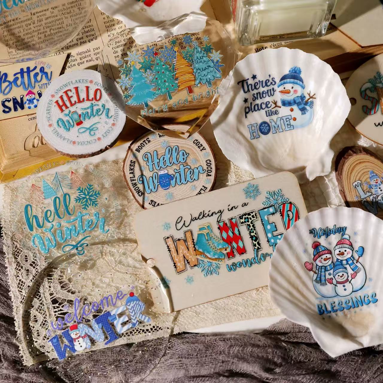 The Blue Winter Transfer Stickers capture the serene beauty of the cold season with snowflakes, frosty trees, and gentle blue tones. Perfect for journaling, scrapbooking, and card making, they bring a calm and elegant winter atmosphere to your creative projects.