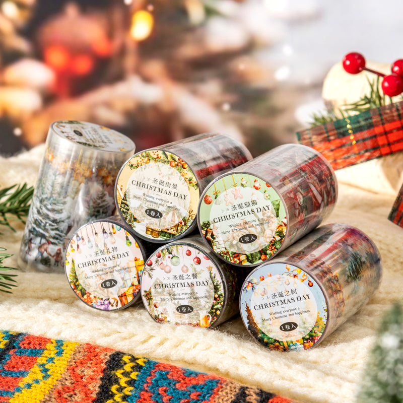 Celebrate the joy of the season with the Christmas Day tape! Featuring classic holiday icons like Christmas trees, stockings, gifts, and snowflakes in festive reds and greens, it's perfect for adding a cheerful touch to your journals, gift wrapping, and holiday crafts. Bring on the cozy Christmas spirit!