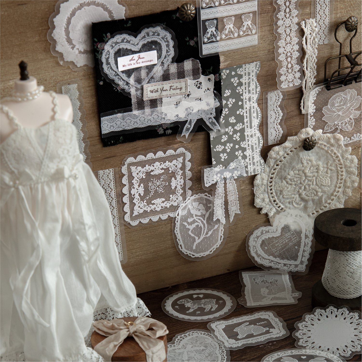 The Lace Story Stickers feature delicate lace patterns, soft florals, and vintage-inspired textures that evoke timeless elegance. Perfect for journals, scrapbooks, cards, and crafts, these stickers add a romantic and graceful touch, turning your pages into dreamy scenes filled with subtle beauty and refined charm.
