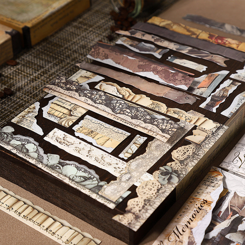 These torn memory strip stickers feature vintage textures, handwritten notes, and faded patterns—perfect for layering, journaling, and adding a nostalgic touch to your creative projects.