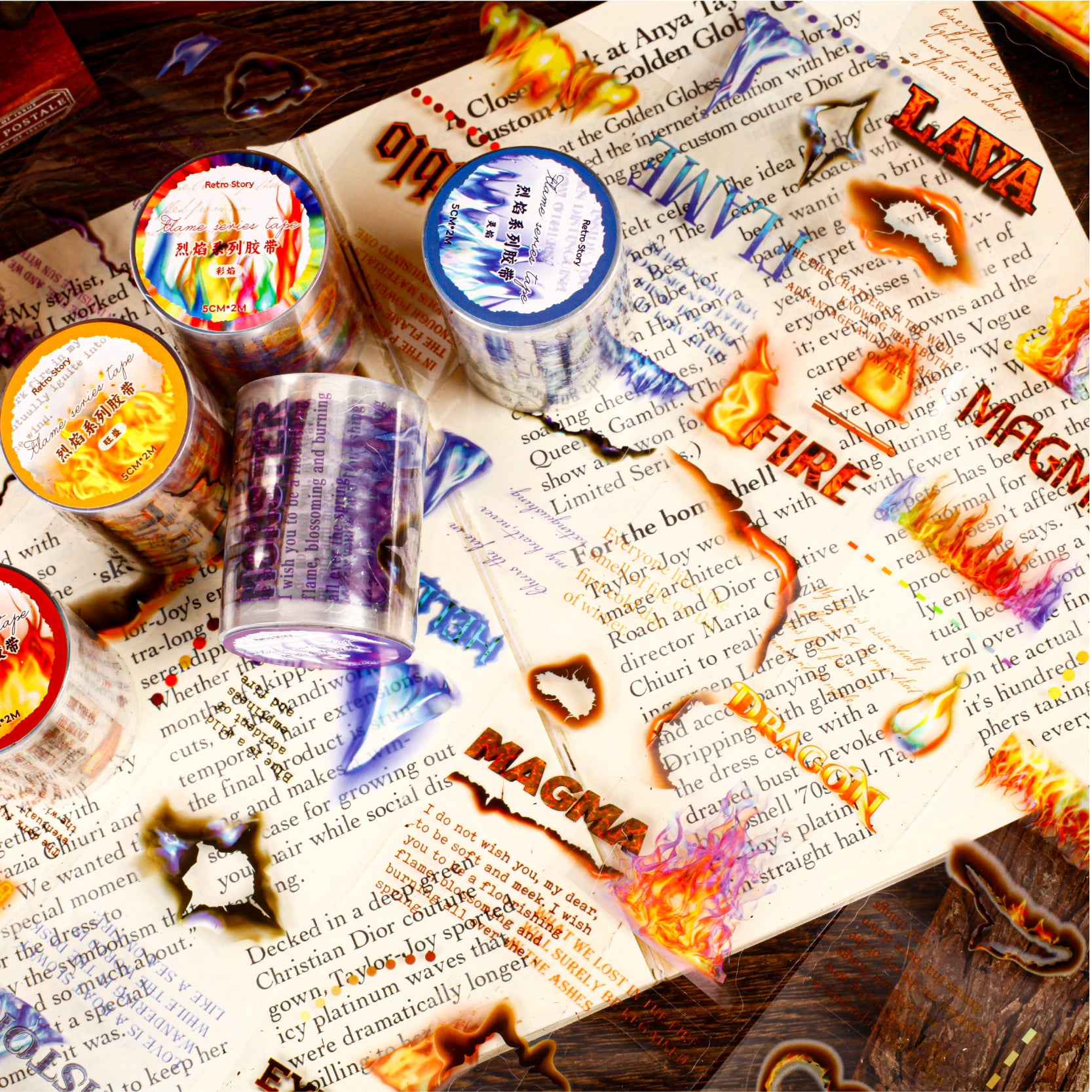 The Blazing Flame Tape features dynamic flame patterns in bold, glowing tones. Inspired by fire’s energy and movement, it adds striking contrast and intensity to journals and crafts. Perfect for creating dramatic layouts that capture passion, power, and the vivid beauty of flickering flames.