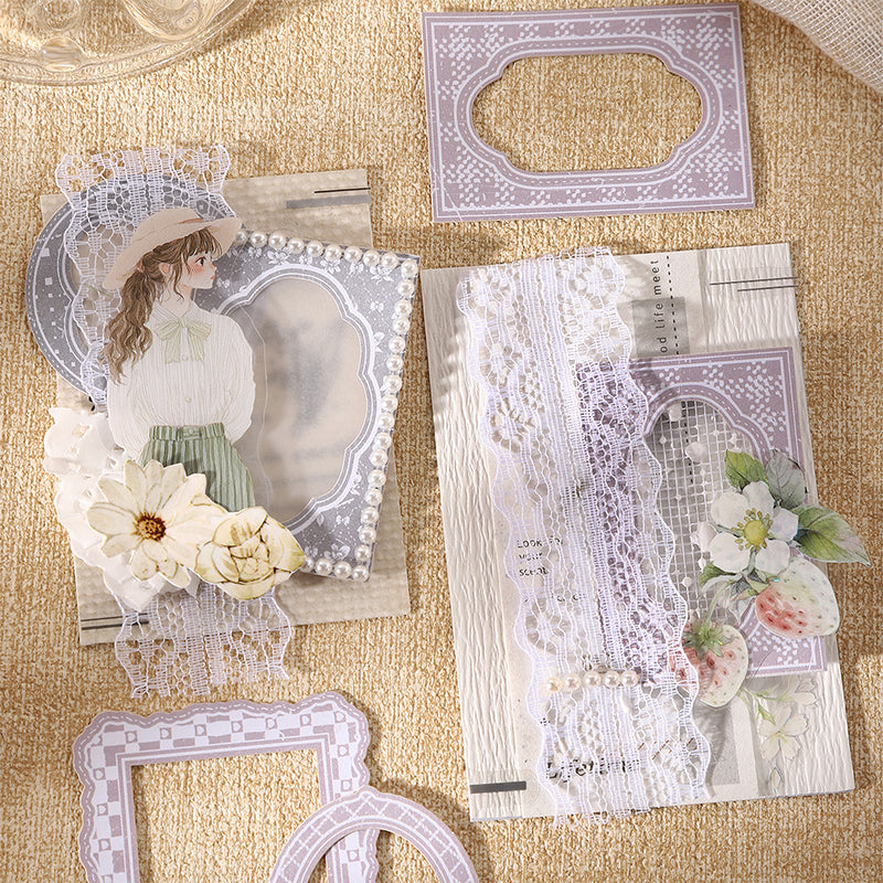 The Framed Illustration Collection Sticker set features artistic frames paired with delicate drawings and decorative details. Designed to highlight notes, photos, and special moments, each piece adds structure and elegance to journals and crafts. Perfect for layering, storytelling, and creating refined layouts with a gallery-inspired touch.