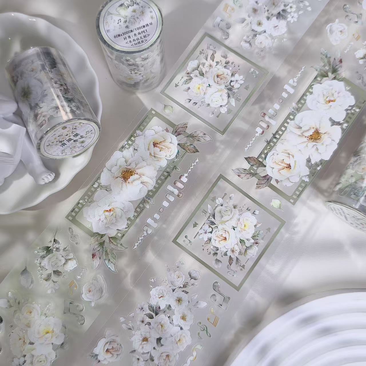 The “Elegant Green Blooms” tape showcases soft green florals with a fresh, understated charm. Its delicate petals and soothing tones bring a calming, natural vibe to any journal or craft project. Perfect for adding gentle accents, botanical layers, and a touch of serene beauty to your creative designs.