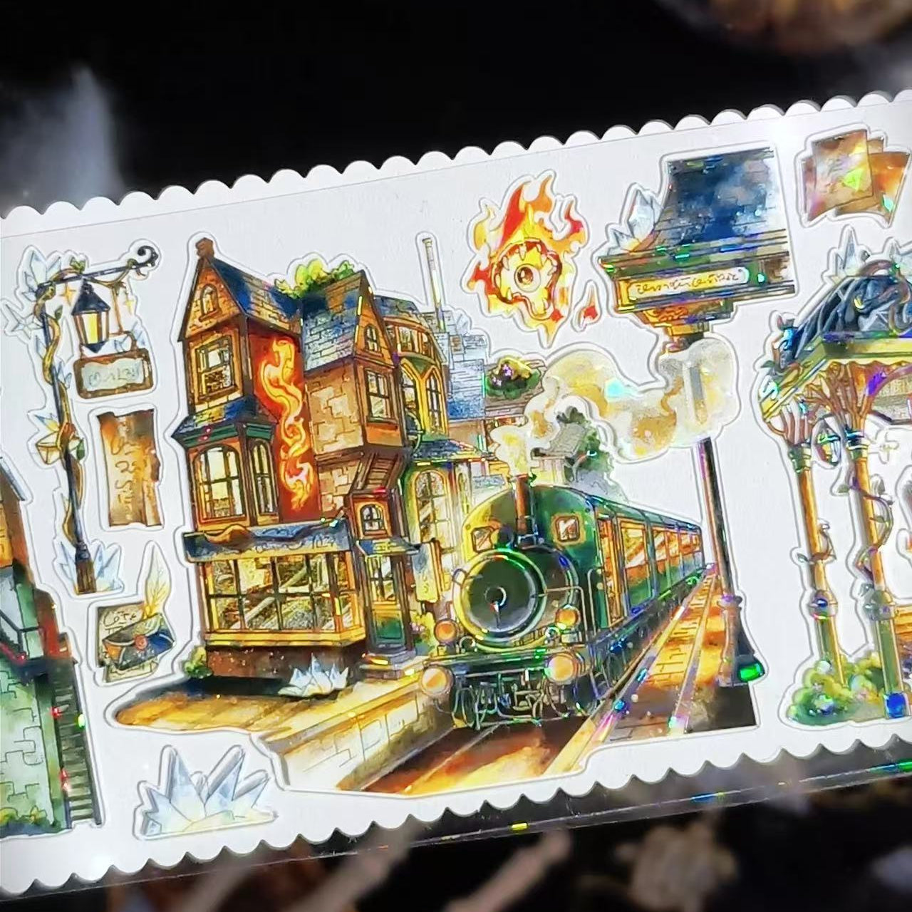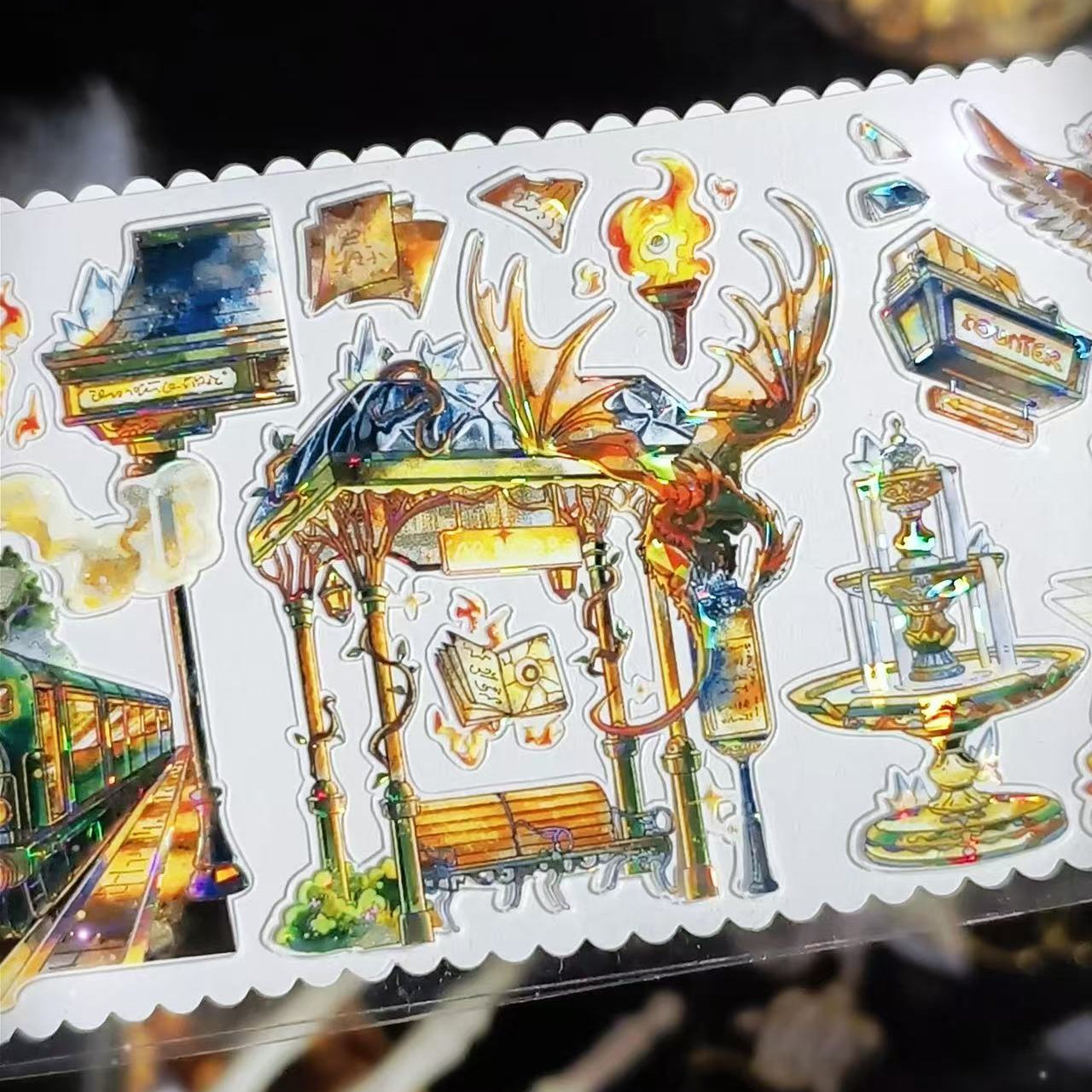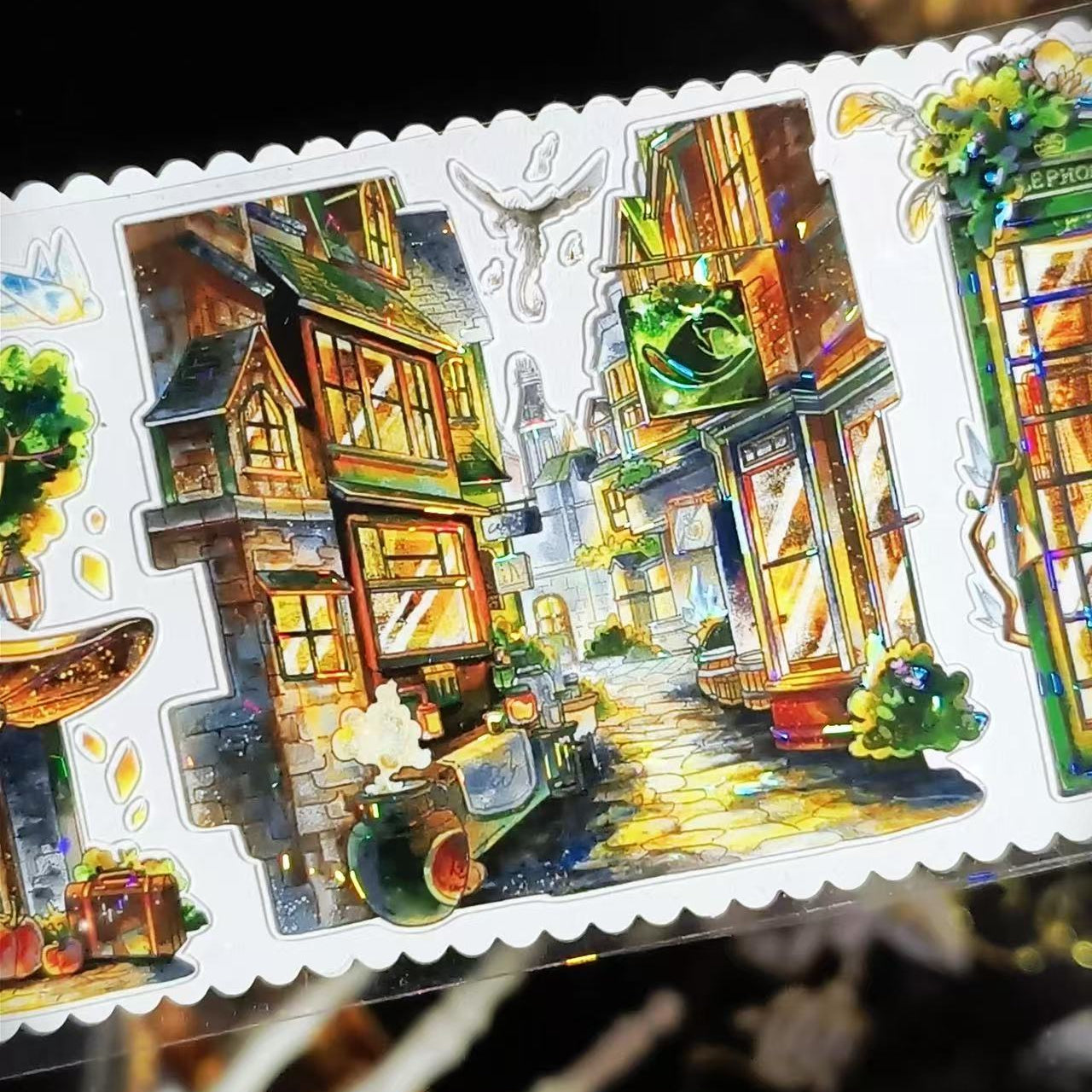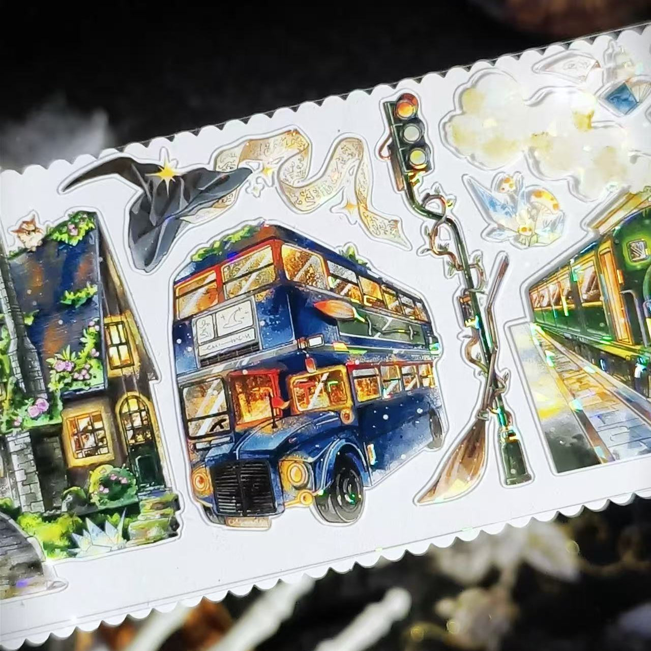 The Eternal Night Magic City Washi Tape captures a mysterious city glowing under endless night. Featuring enchanted buildings, starry skies, and deep, magical tones, it adds fantasy and depth to journals and crafts. Perfect for creating imaginative layouts inspired by magic, adventure, and nocturnal wonder.