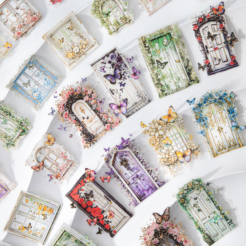 The Butterfly Dancing Window Stickers feature graceful butterflies fluttering beside vintage-style window frames, blending nature with dreamy charm. Perfect for decorating journals, scrapbooks, or letters, these stickers bring a gentle, romantic touch to your creative projects, evoking quiet afternoons filled with sunlight, poetry, and whimsical inspiration.