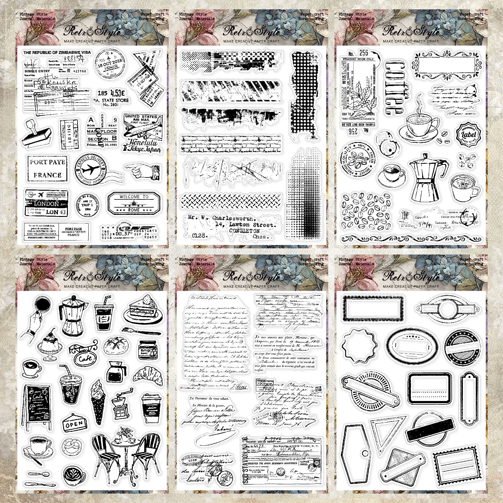 Clear silicone stamps with fine details, perfect for journaling, card making, and DIY crafts. Easy to use and clean.