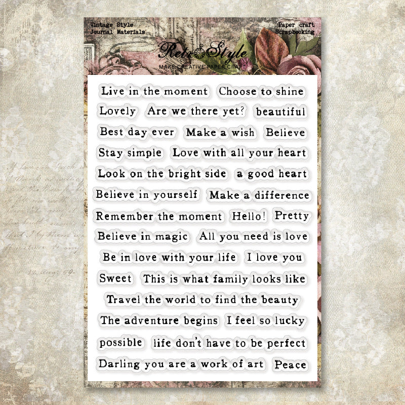 Clear silicone stamps with fine details, perfect for journaling, card making, and DIY crafts. Easy to use and clean.