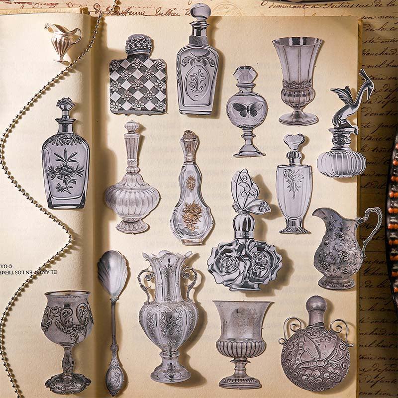 The Gilded Silver Memories sticker set evokes nostalgic dreams with shimmering silver accents and vintage-inspired designs. Featuring delicate patterns, antique details, and a soft metallic glow, each piece adds elegance and depth to journals and crafts. Perfect for creating timeless layouts filled with quiet romance and old-world charm.