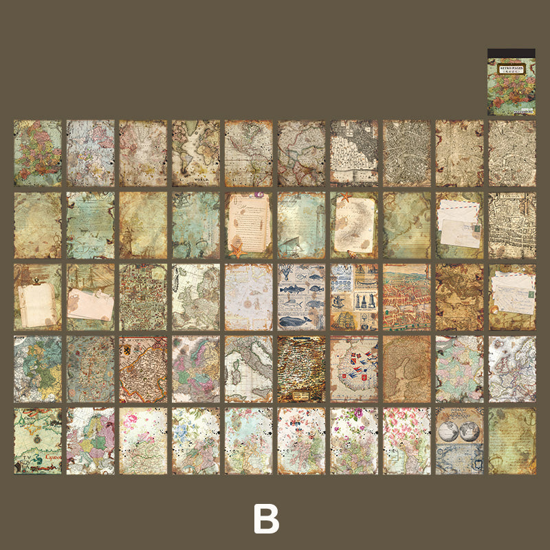 Theme: book pages, black and white newspaper, ocean map, manuscript, flower and plant, music sheet.